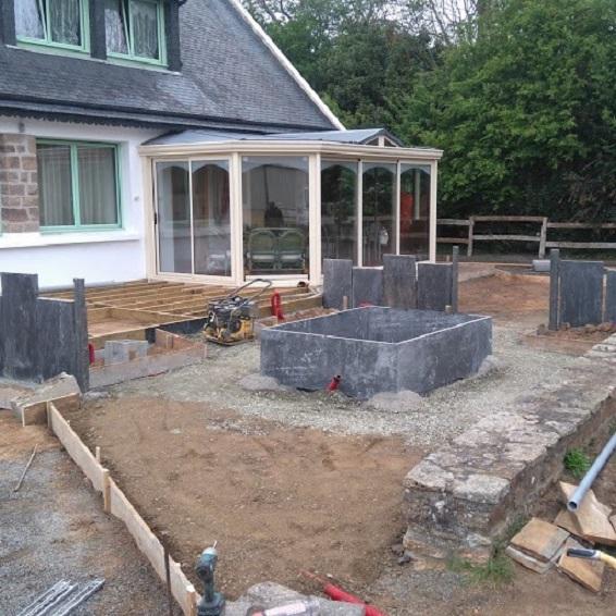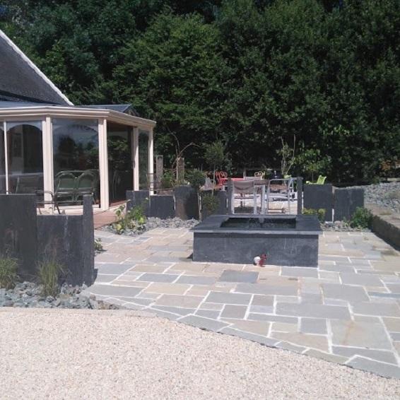 Réaménagement d'une terrasse et création d'un bassin avec une fontaine
